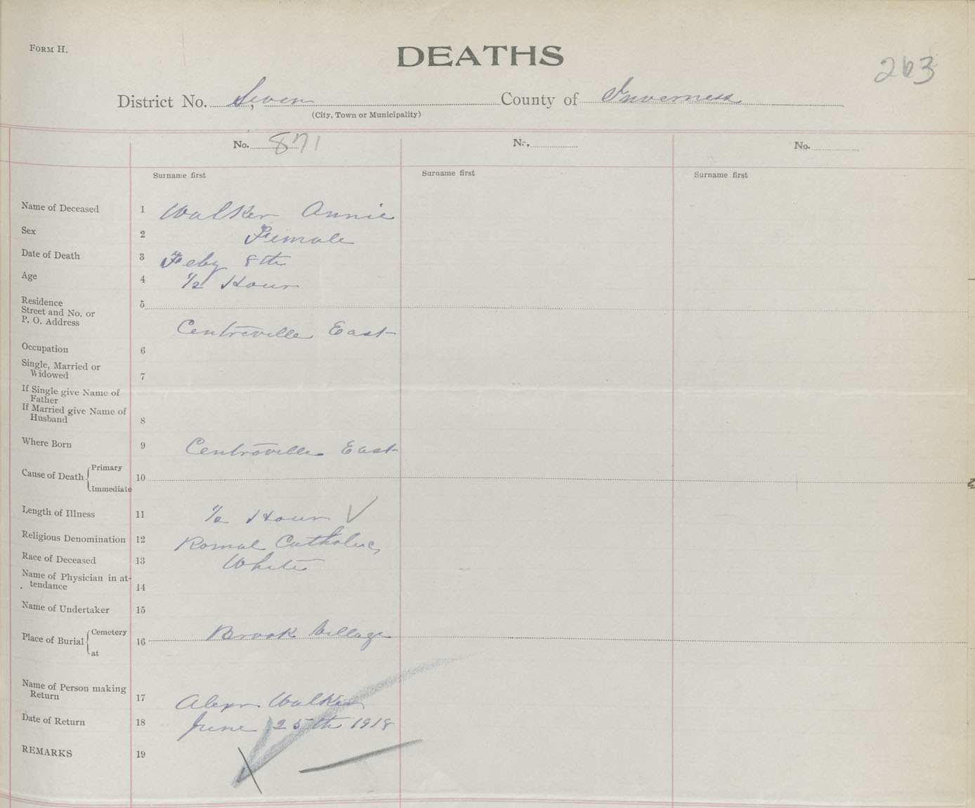 Death Registration: Year: 1918 book: 43 page: 263 number: 871