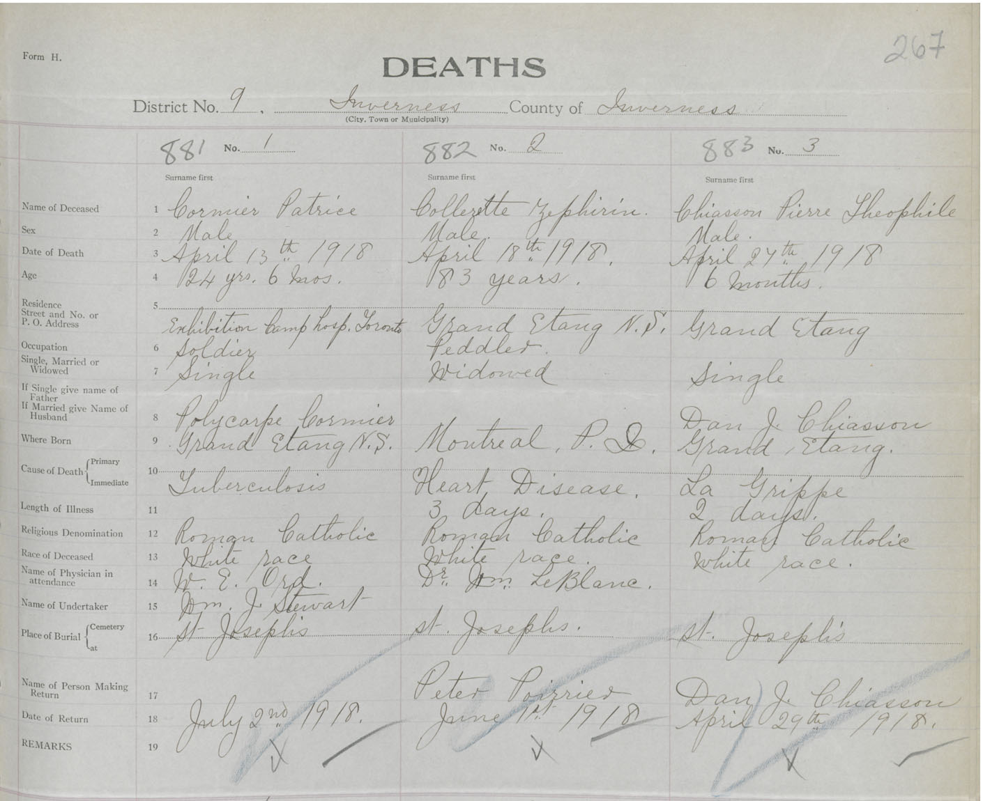Death Registration: Year: 1918 book: 43 page: 267 number: 881