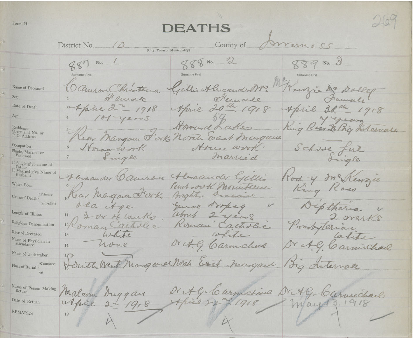 Death Registration: Year: 1918 book: 43 page: 269 number: 887