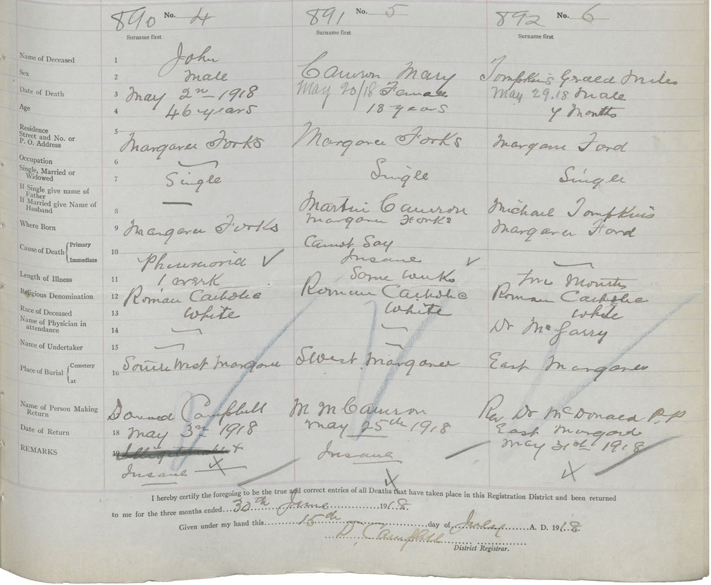 Death Registration: Year: 1918 book: 43 page: 269 number: 890