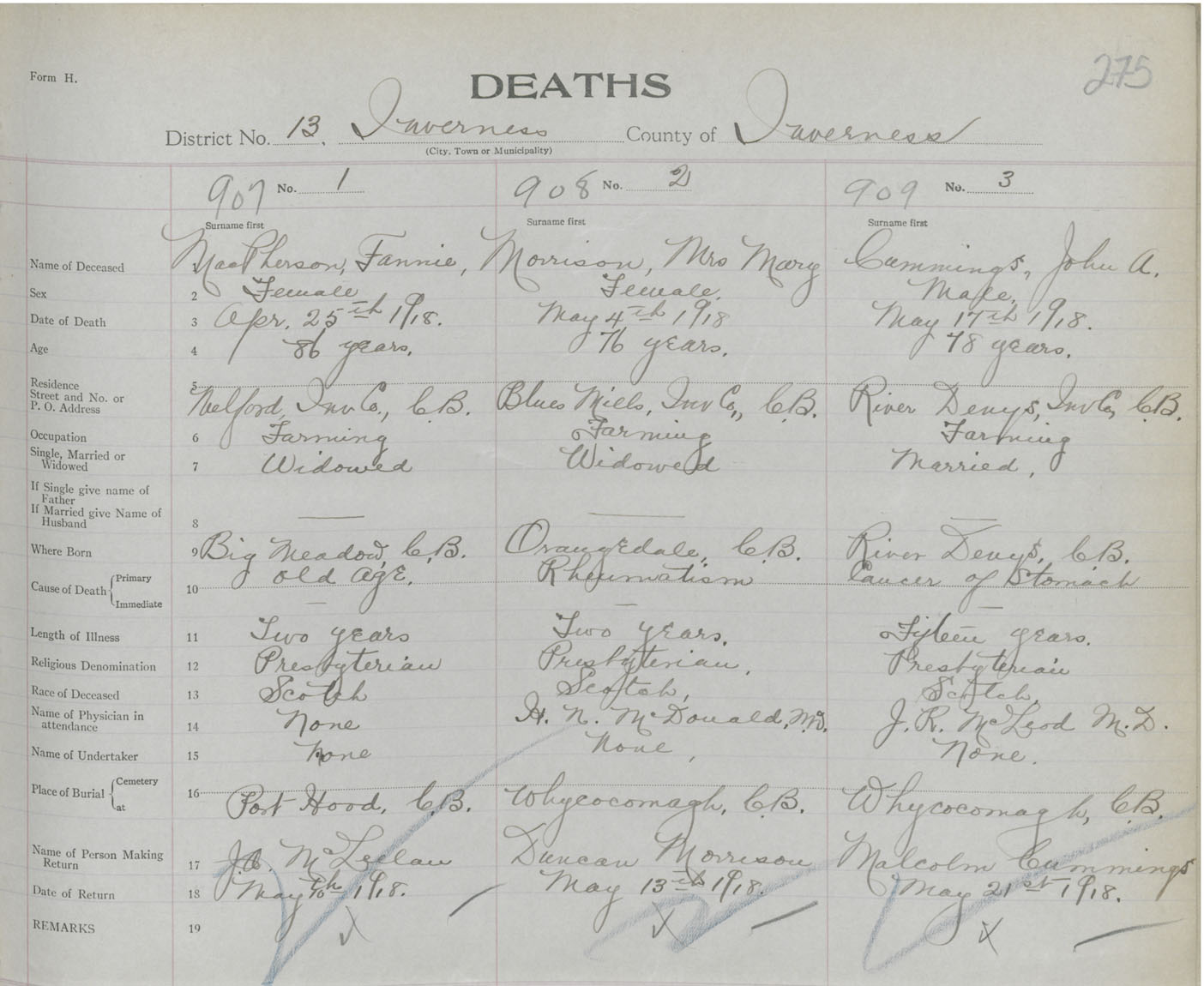 Death Registration: Year: 1918 book: 43 page: 275 number: 907