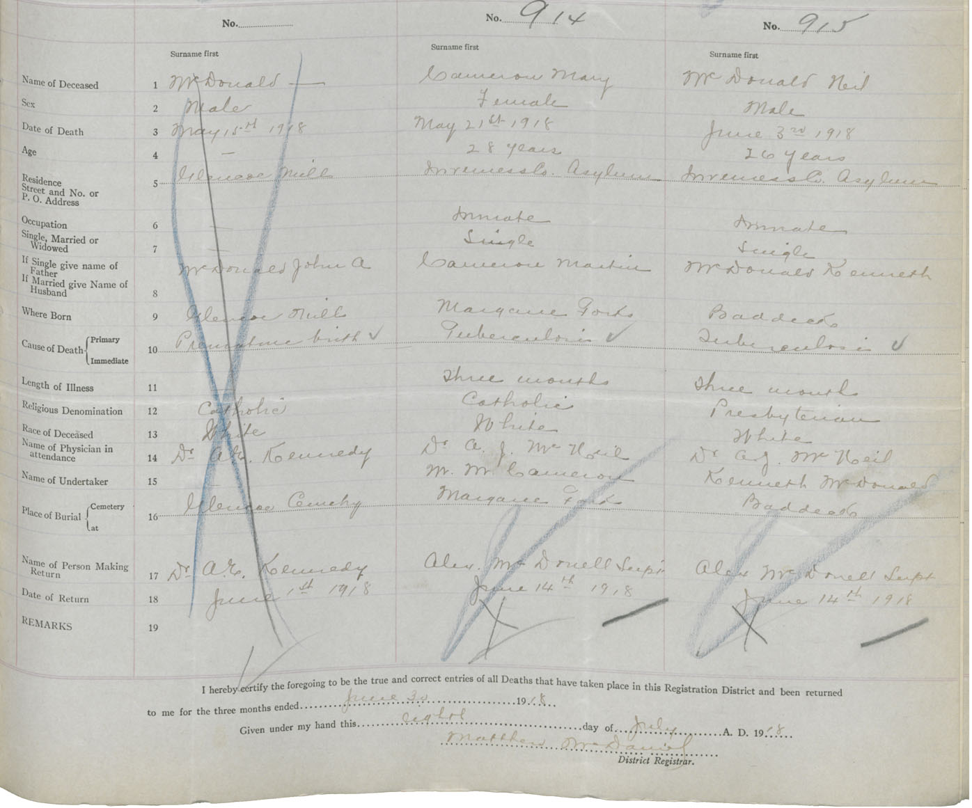 Death Registration: Year: 1918 book: 43 page: 279 number: 914