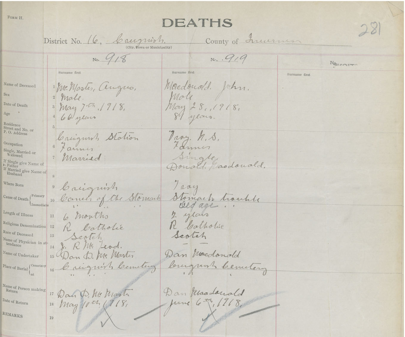 Death Registration: Year: 1918 book: 43 page: 281 number: 919