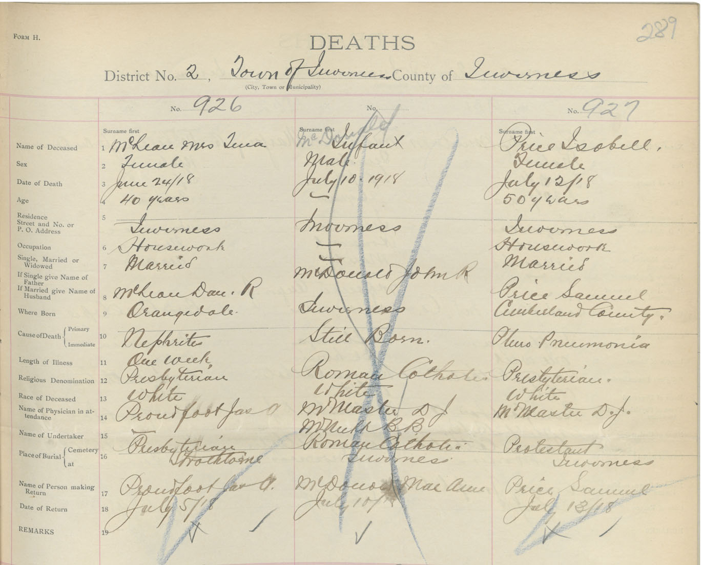 Death Registration: Year: 1918 book: 43 page: 289 number: 927