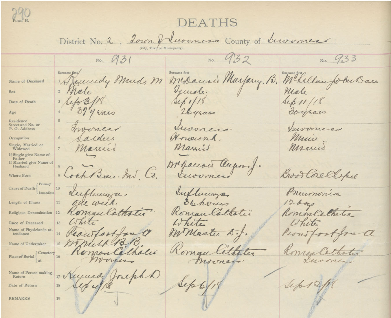 Death Registration: Year: 1918 book: 43 page: 290 number: 933