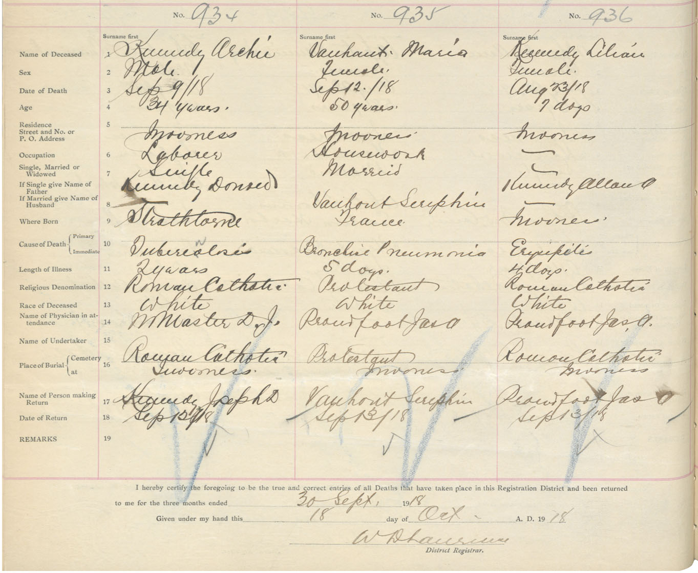 Death Registration: Year: 1918 book: 43 page: 290 number: 936