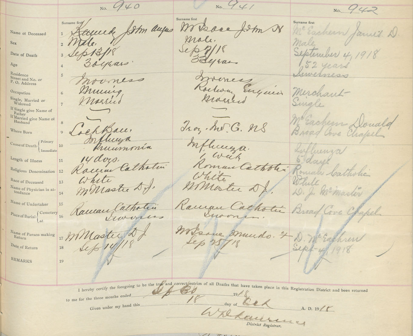 Death Registration: Year: 1918 book: 43 page: 291 number: 942