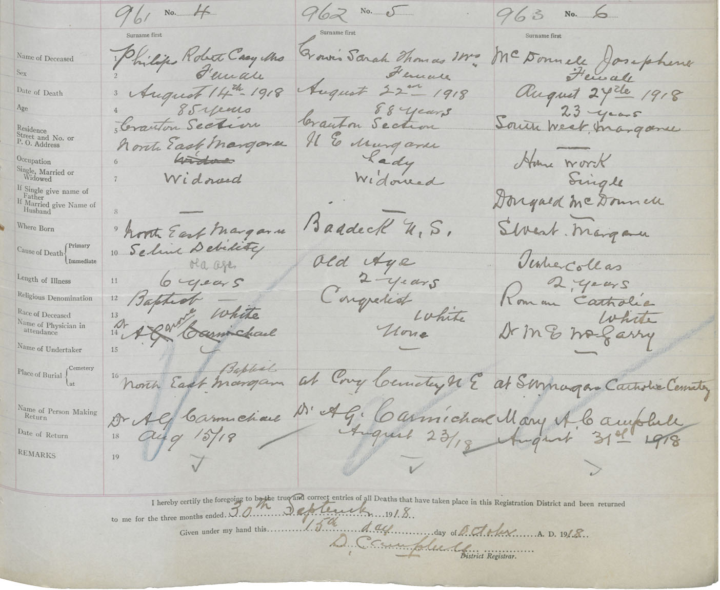Death Registration: Year: 1918 book: 43 page: 303 number: 963