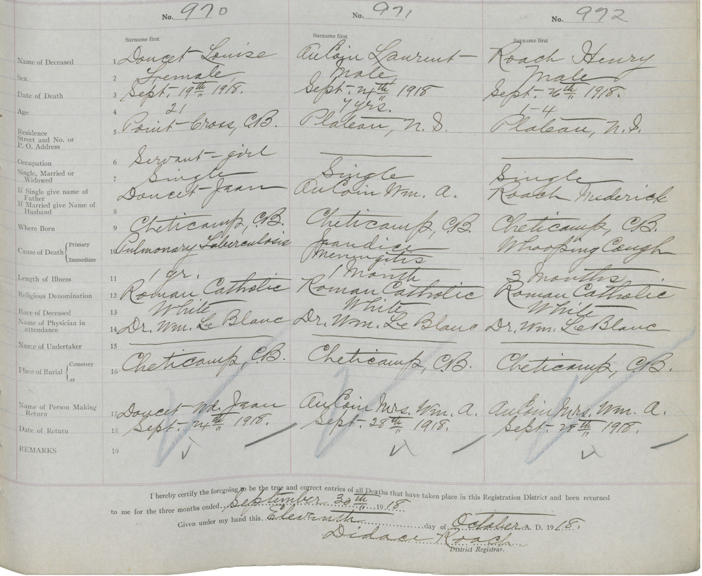 Death Registration: Year: 1918 book: 43 page: 305 number: 972