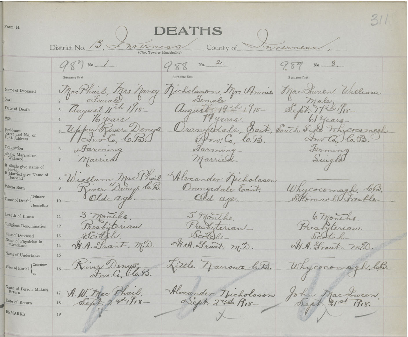 Death Registration: Year: 1918 book: 43 page: 311 number: 989
