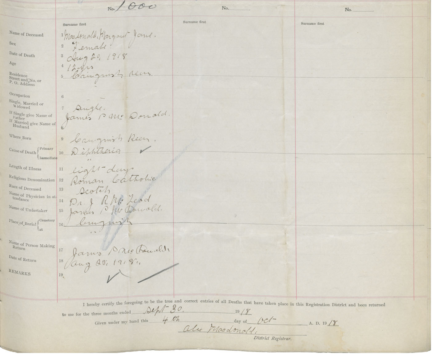 Death Registration: Year: 1918 book: 43 page: 317 number: 1000