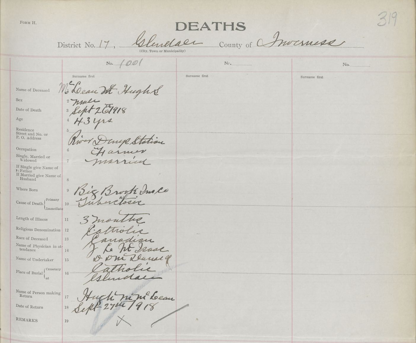 Death Registration: Year: 1918 book: 43 page: 319 number: 1001