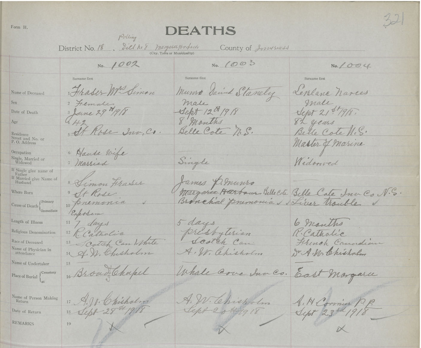 Death Registration: Year: 1918 book: 43 page: 321 number: 1002