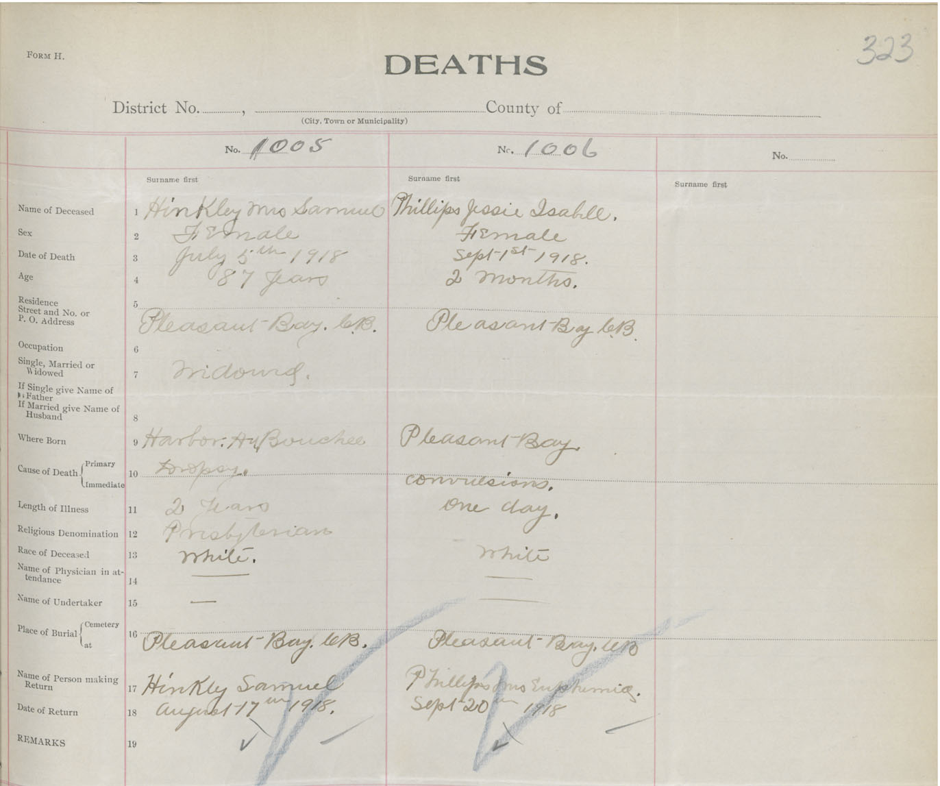 Death Registration: Year: 1918 book: 43 page: 323 number: 1005