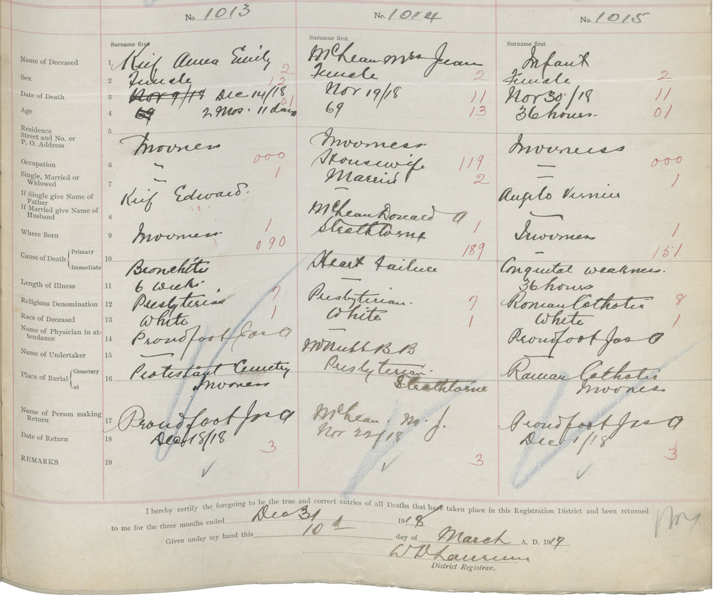 Death Registration: Year: 1918 book: 43 page: 327 number: 1013