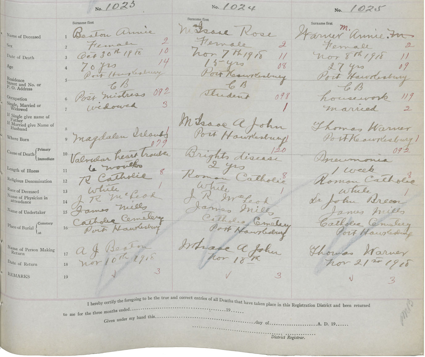 Death Registration: Year: 1918 book: 43 page: 333 number: 1023