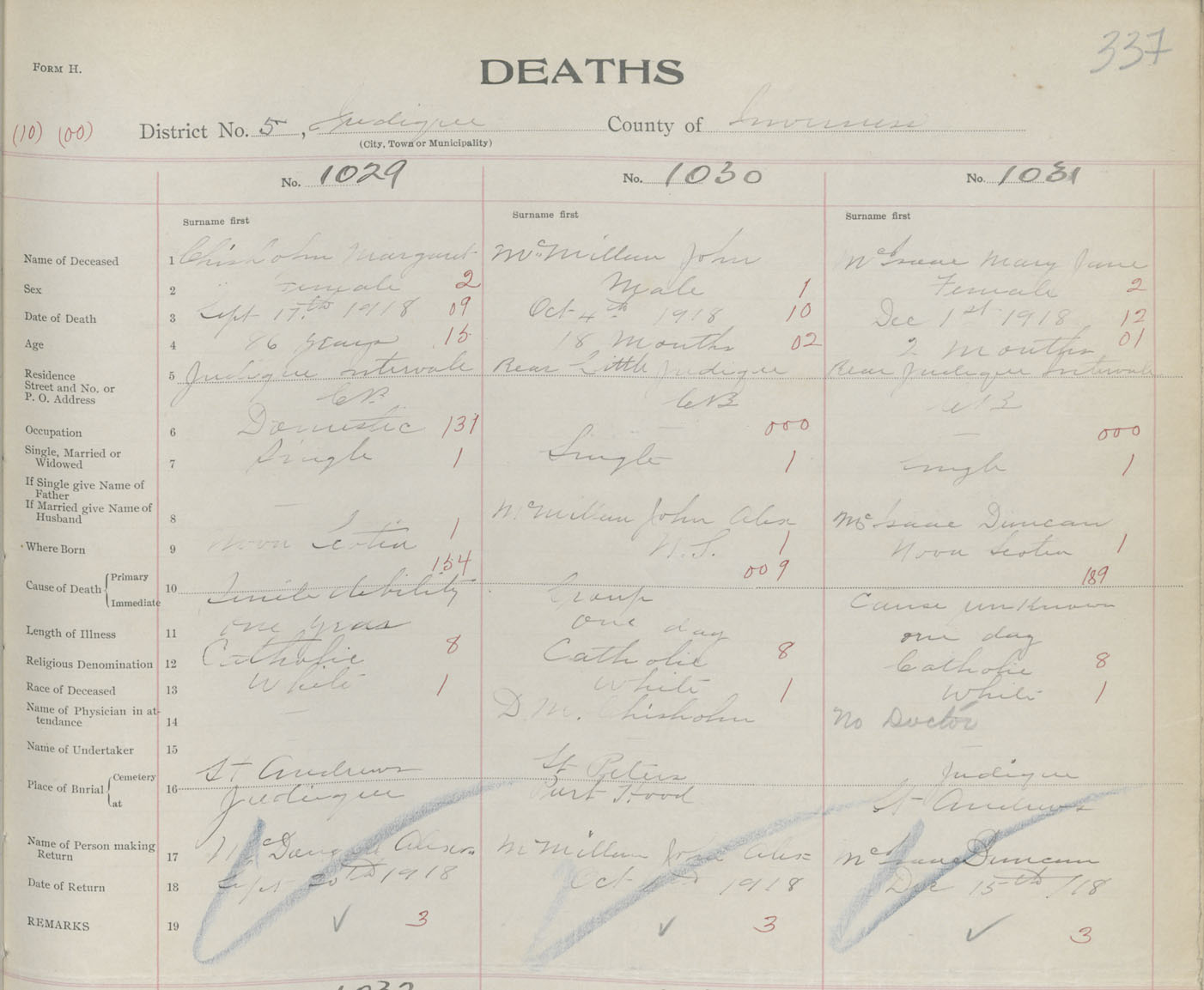 Death Registration: Year: 1918 book: 43 page: 337 number: 1029