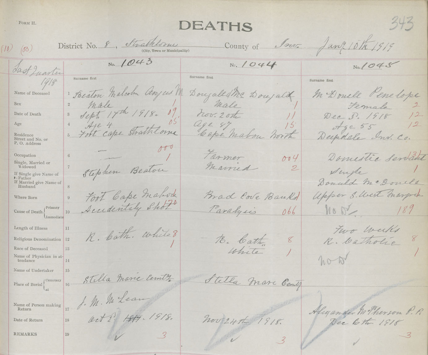 Death Registration: Year: 1918 book: 43 page: 343 number: 1043