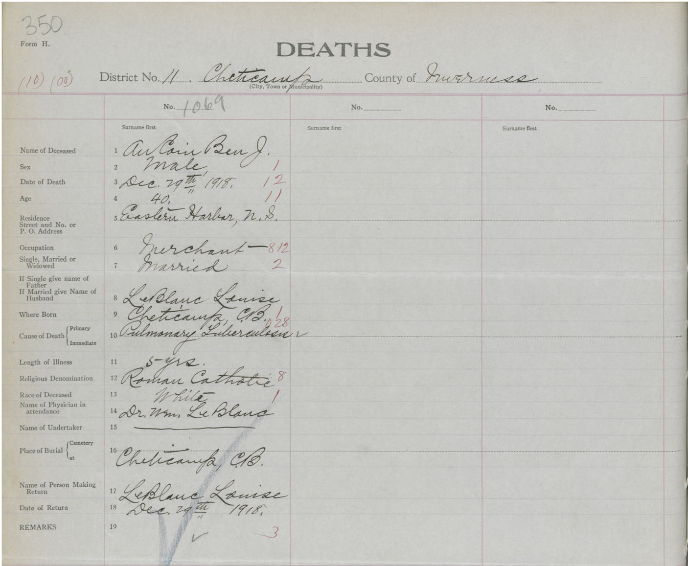 Death Registration: Year: 1918 book: 43 page: 350 number: 1069