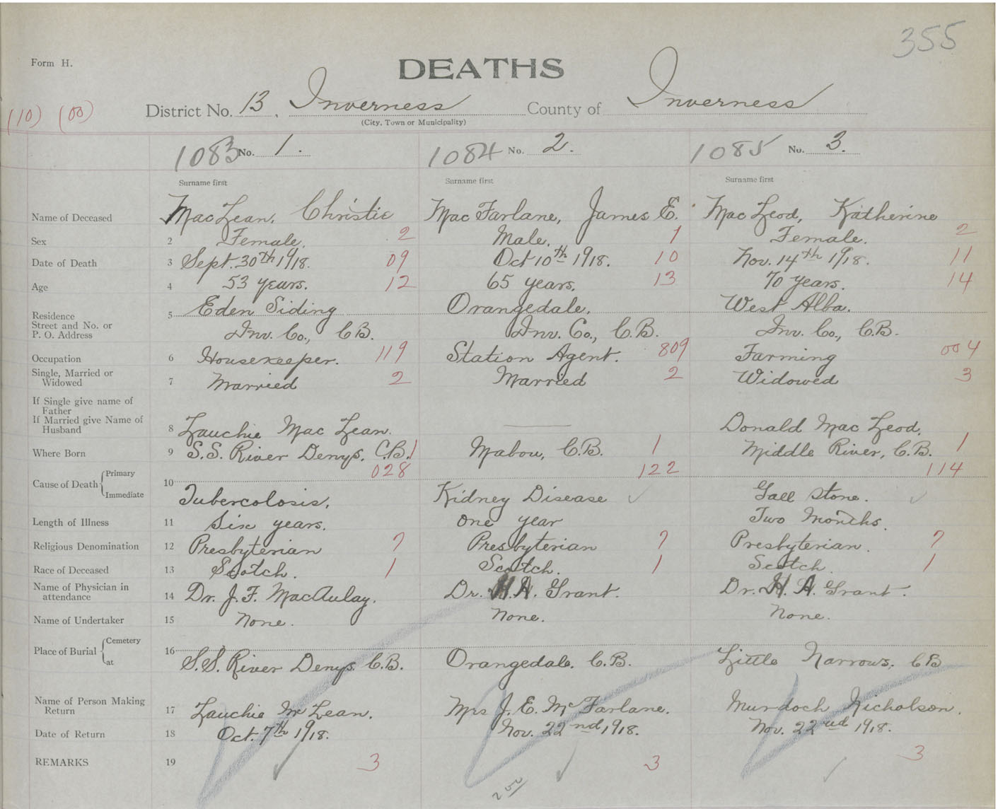 Death Registration: Year: 1918 book: 43 page: 355 number: 1083