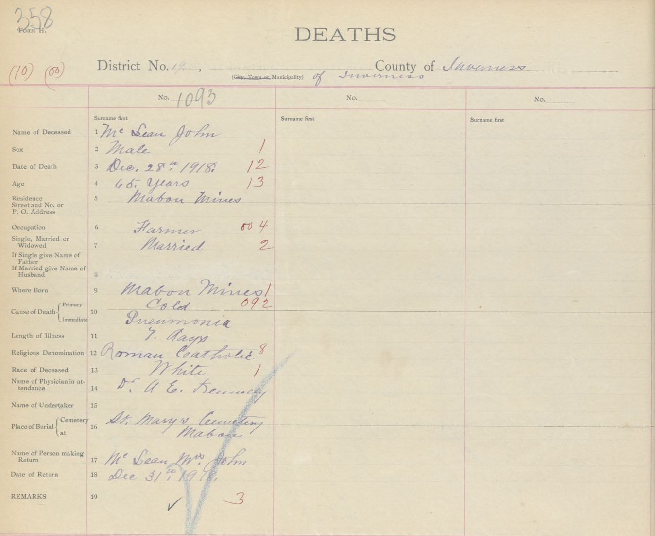 Death Registration: Year: 1918 book: 43 page: 358 number: 1093