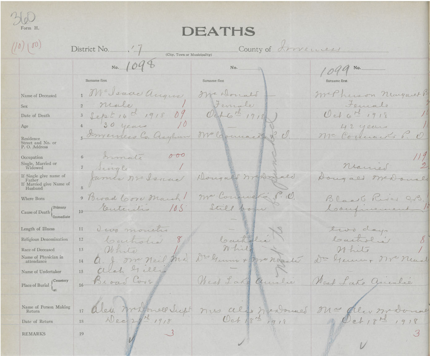 Death Registration: Year: 1918 book: 43 page: 360 number: 1098