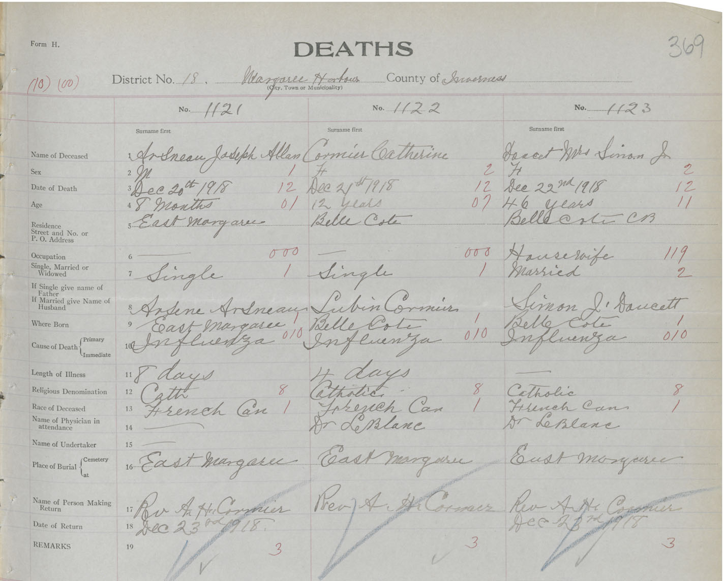 Death Registration: Year: 1918 book: 43 page: 369 number: 1121