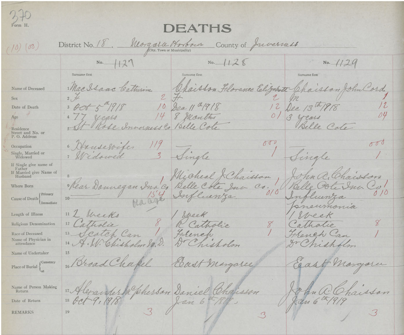 Death Registration: Year: 1918 book: 43 page: 370 number: 1127