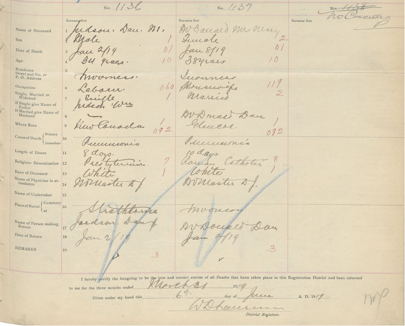 Death Registration: Year: 1918 book: 43 page: 371 number: 1136
