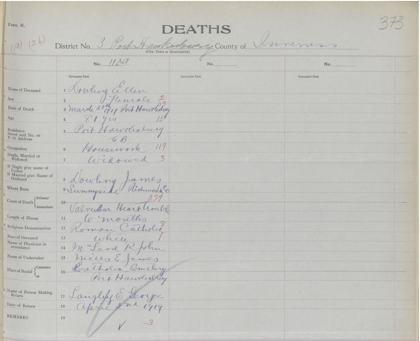 Death Registration: Year: 1918 book: 43 page: 373 number: 1139