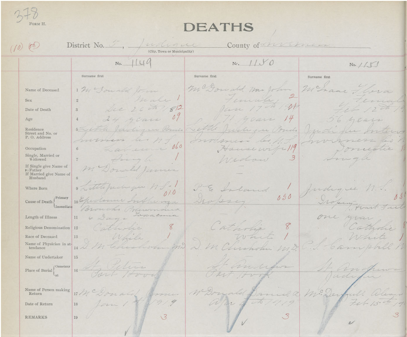 Death Registration: Year: 1918 book: 43 page: 378 number: 1149