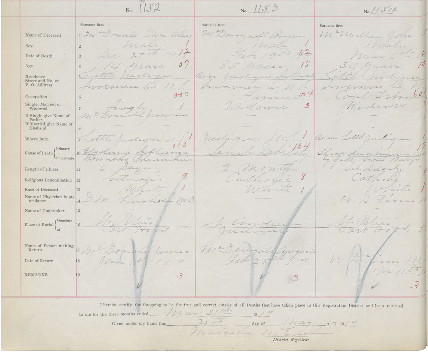 Death Registration: Year: 1918 book: 43 page: 378 number: 1152