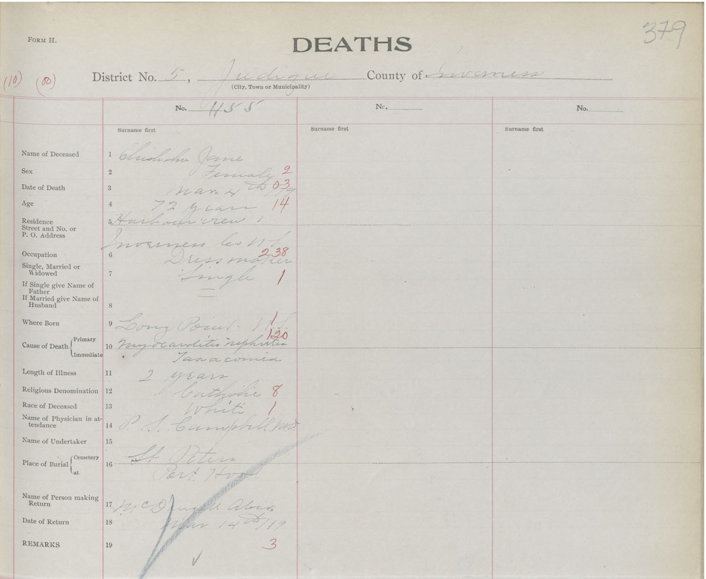 Death Registration: Year: 1919 book: 43 page: 379 number: 1155