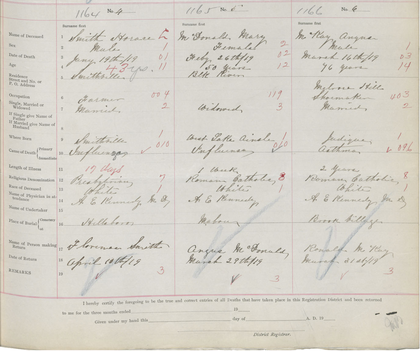 Death Registration: Year: 1919 book: 43 page: 383 number: 1164