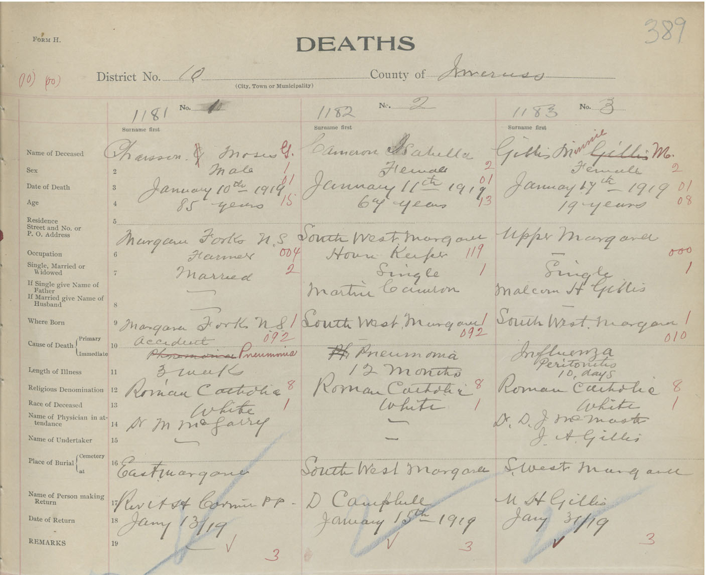 Death Registration: Year: 1919 book: 43 page: 389 number: 1183