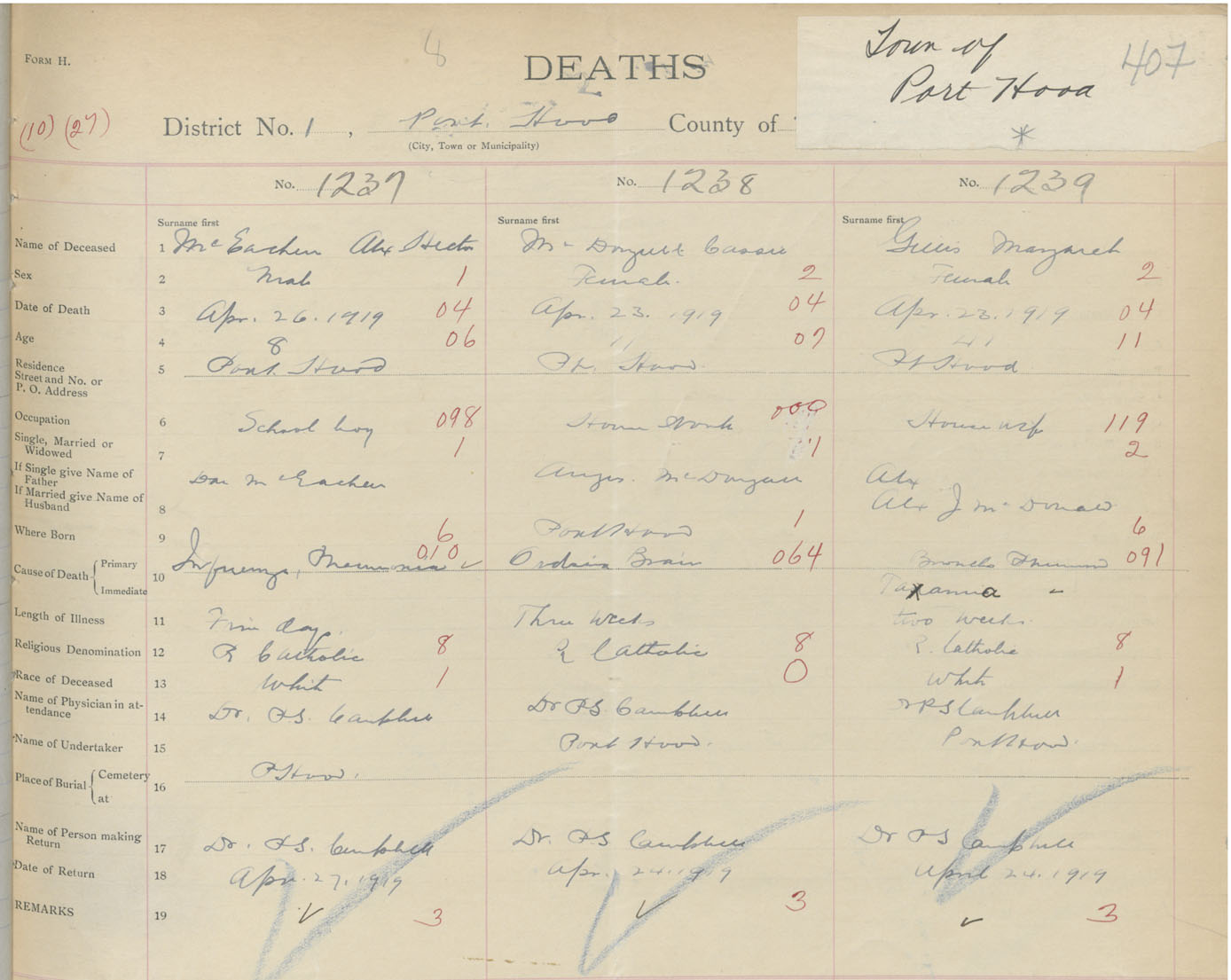 Death Registration: Year: 1919 book: 43 page: 407 number: 1239