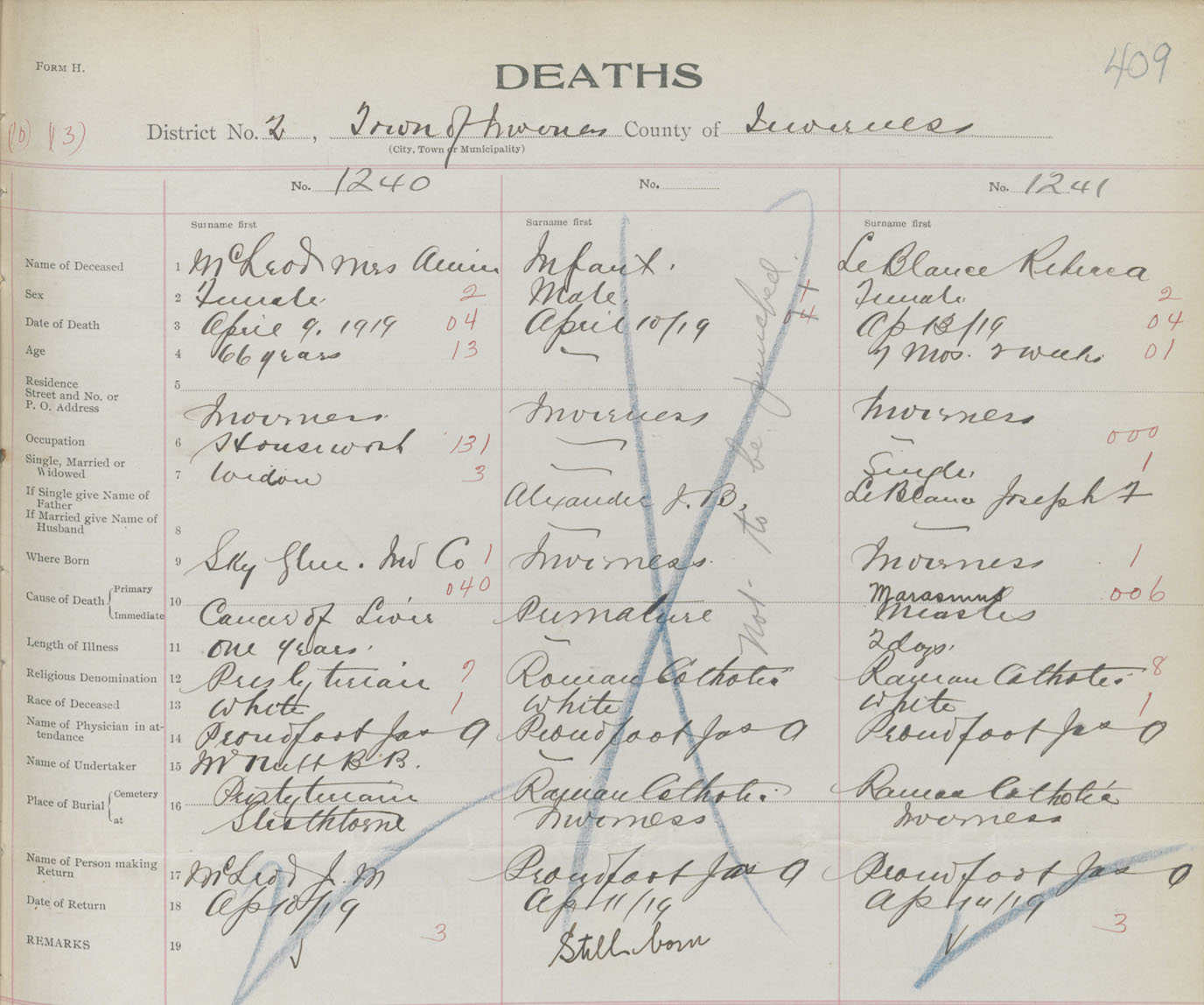 Death Registration: Year: 1919 book: 43 page: 409 number: 1241