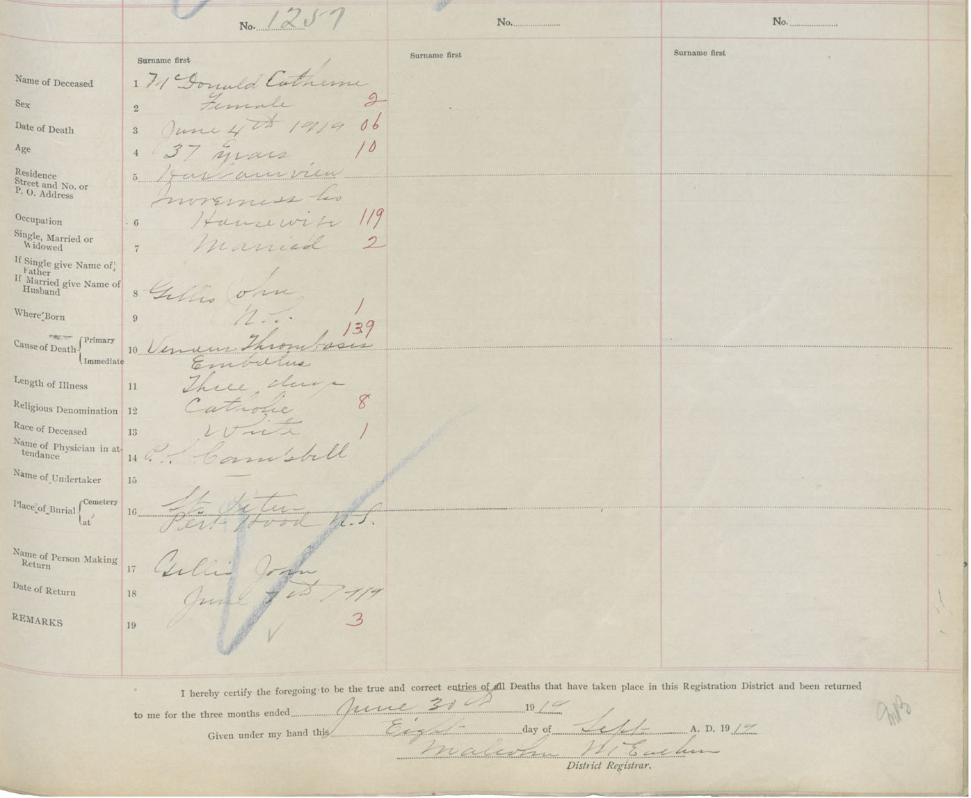 Death Registration: Year: 1919 book: 43 page: 417 number: 1257