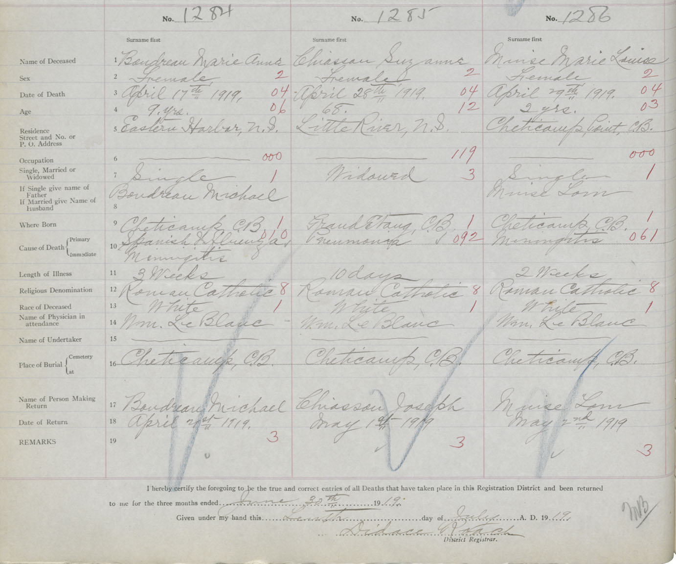 Death Registration: Year: 1919 book: 43 page: 430 number: 1286