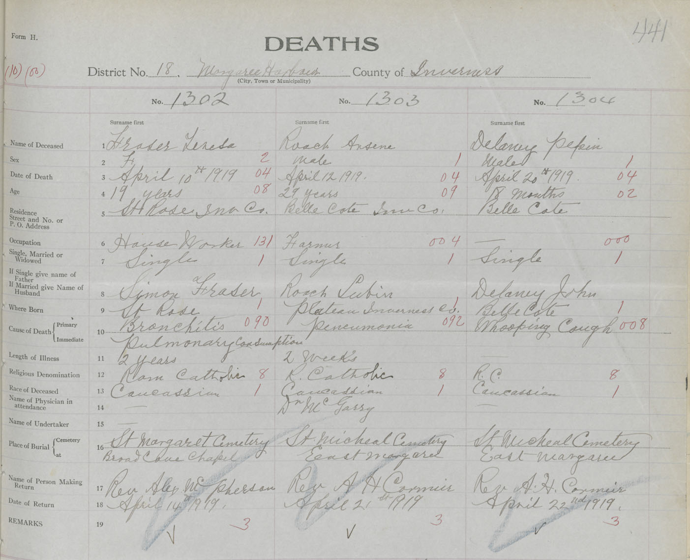 Death Registration: Year: 1919 book: 43 page: 441 number: 1304