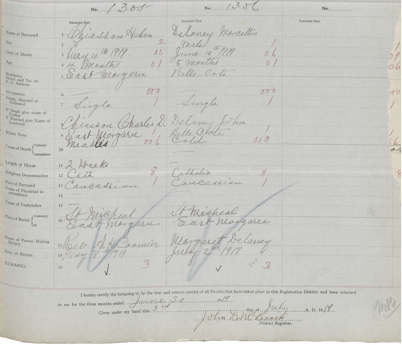 Death Registration: Year: 1919 book: 43 page: 441 number: 1306