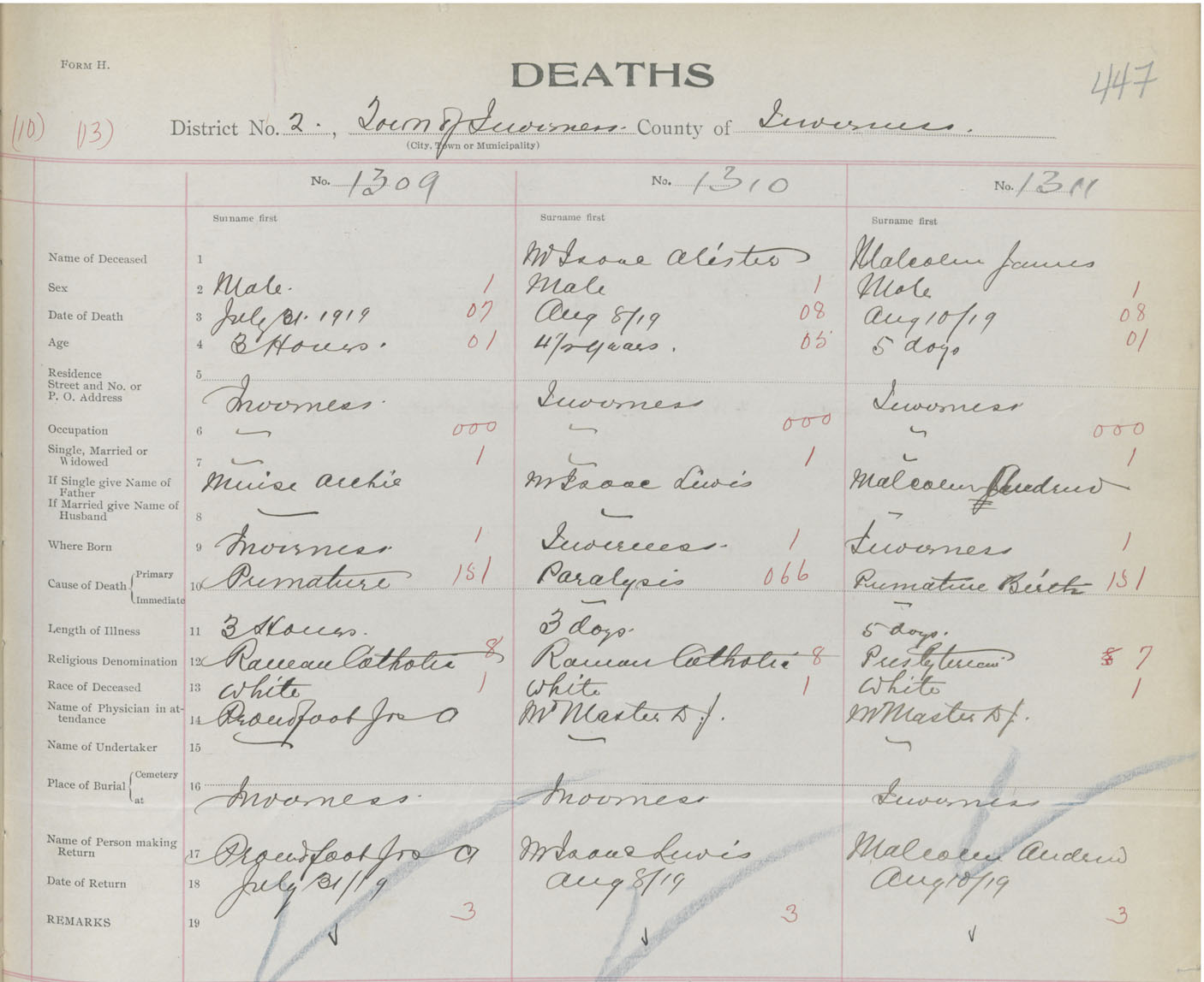 Death Registration: Year: 1919 book: 43 page: 447 number: 1311