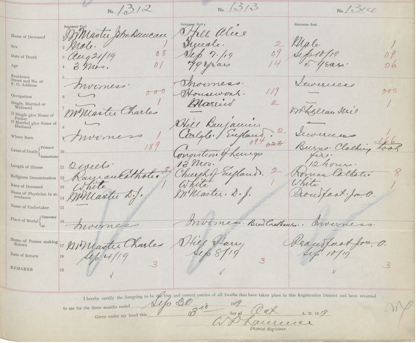 Death Registration: Year: 1919 book: 43 page: 447 number: 1314