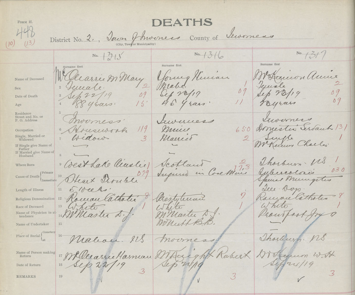 Death Registration: Year: 1919 book: 43 page: 448 number: 1317