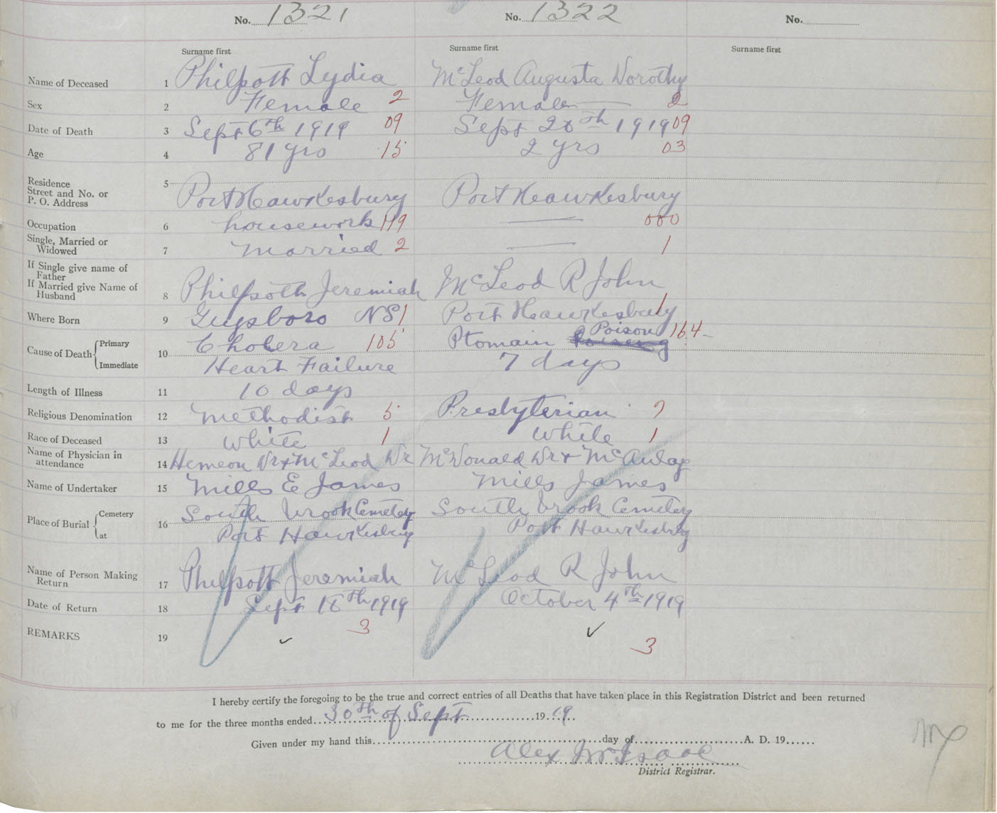 Death Registration: Year: 1919 book: 43 page: 449 number: 1322