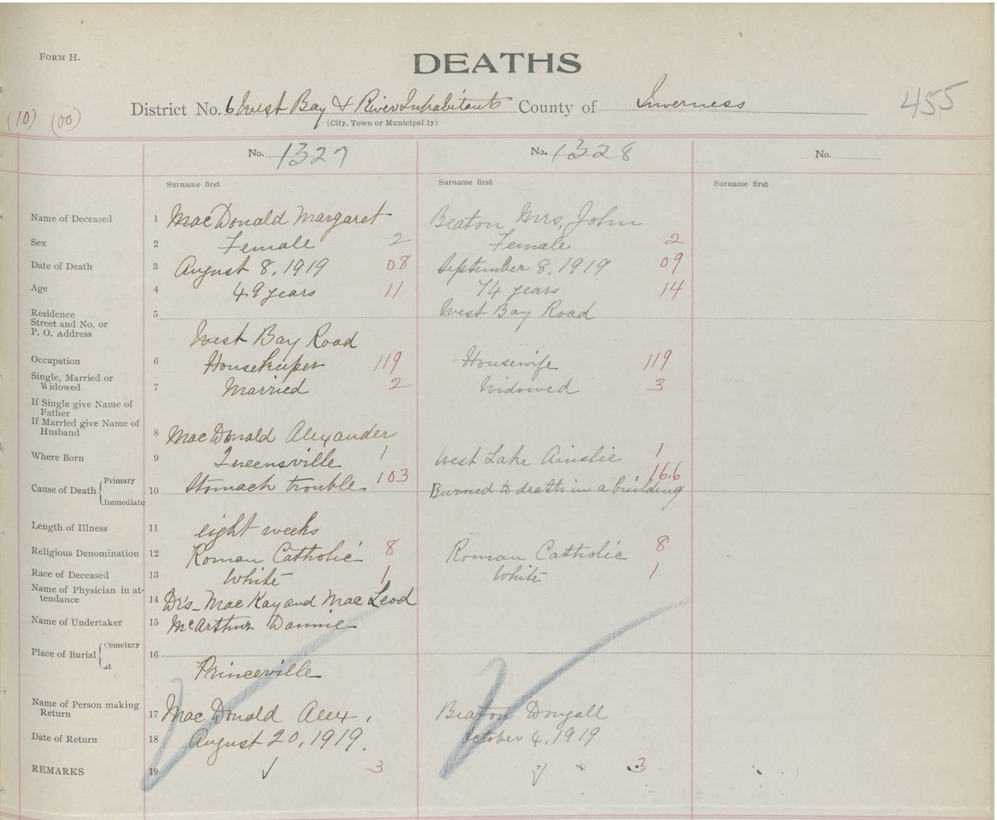 Death Registration: Year: 1919 book: 43 page: 455 number: 1328