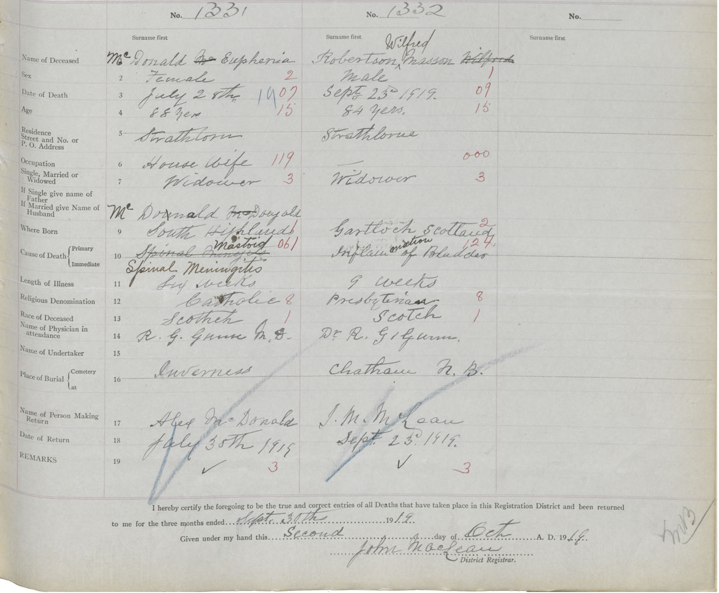 Death Registration: Year: 1919 book: 43 page: 457 number: 1332