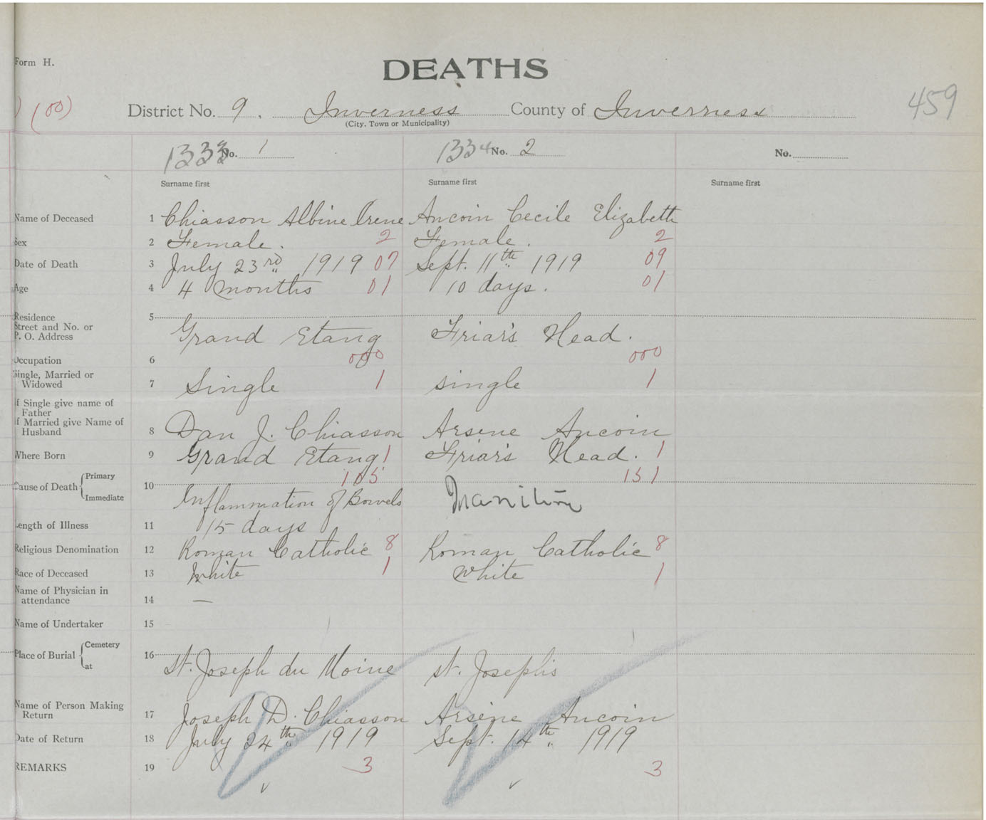 Death Registration: Year: 1919 book: 43 page: 459 number: 1334