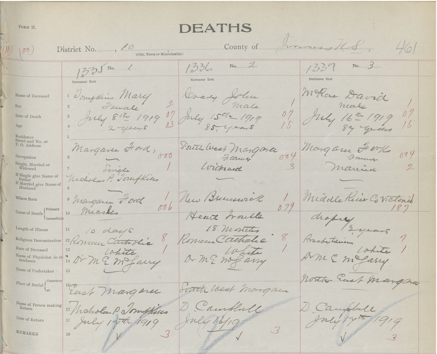 Death Registration: Year: 1919 book: 43 page: 461 number: 1337