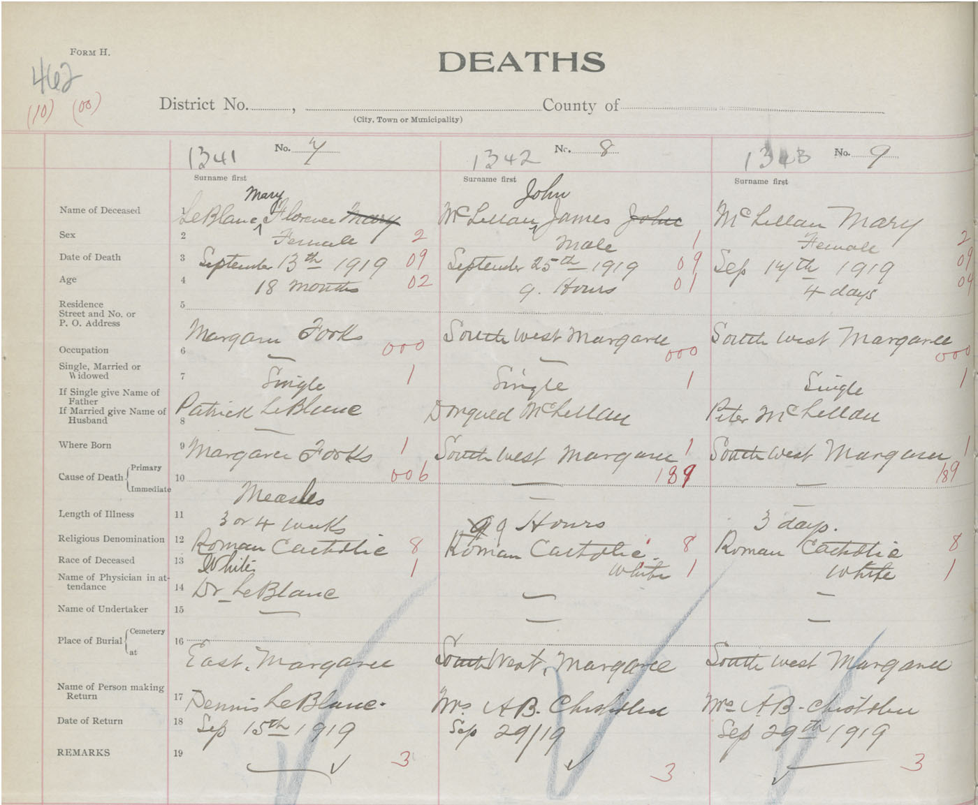 Death Registration: Year: 1919 book: 43 page: 462 number: 1343